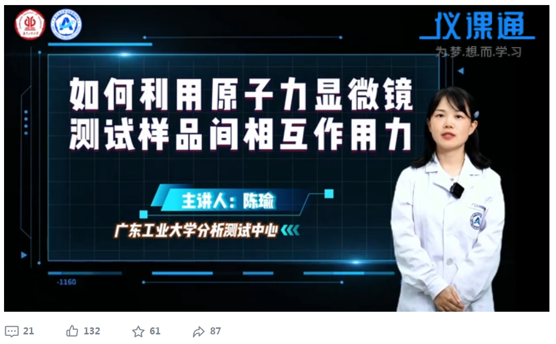 陈瑜在微课作品中介绍了原子力显微镜测试样品间相互作用力的原理、测试方法、典型应用案例以及三种常见修饰探针的方法。该作品赢得了评审委员会和大众的一致认可,最终在众多竞争者中崭露头角,荣获佳绩。