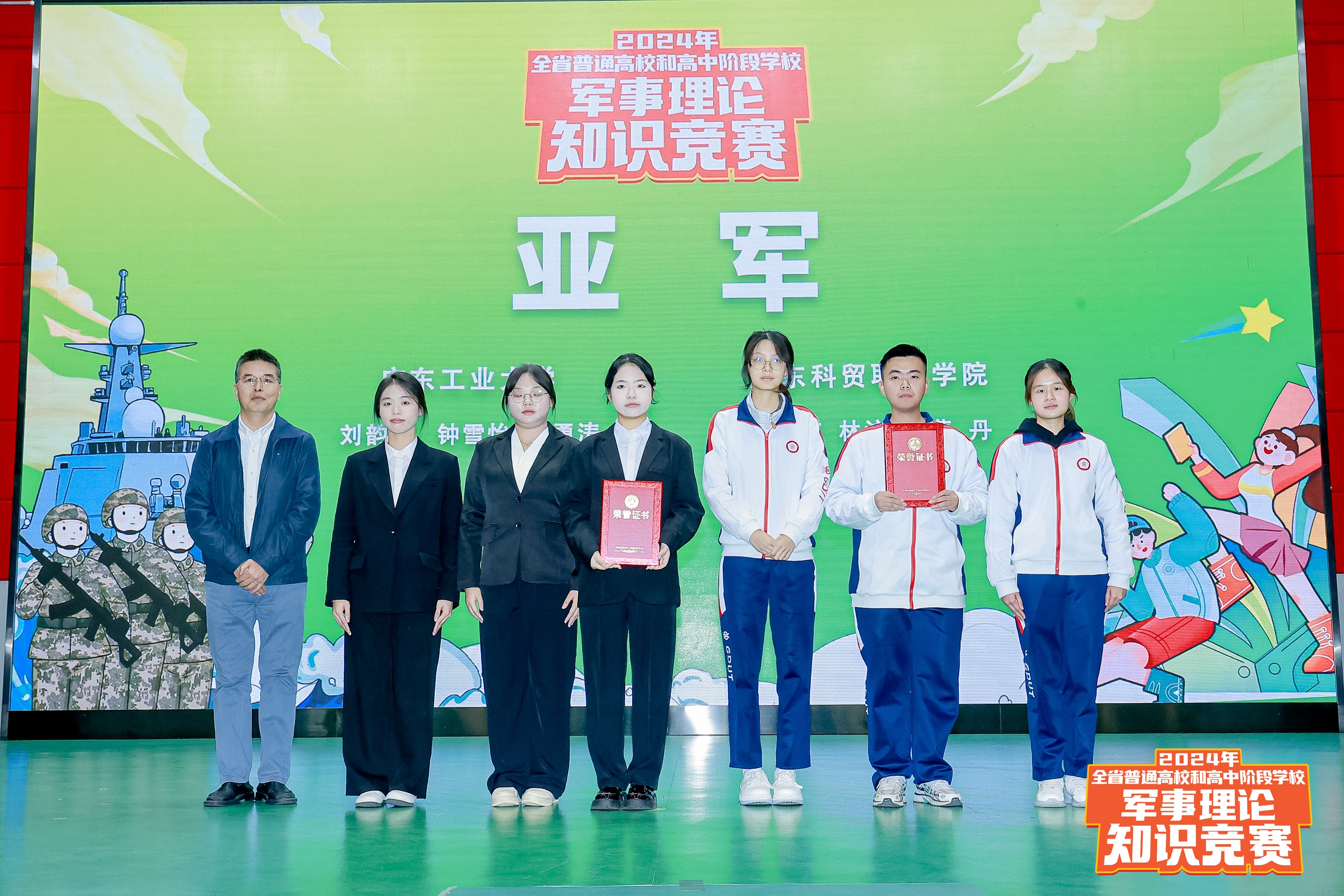 12月15日,由广东省教育厅、广东省军区战备建设局组织开展的2024年全省普通高校军事理论知识竞赛复赛和决赛在广东邮电职业技术学院进行。学校选拔推荐的自动化学院周勇涛、轻工化工学院刘韵慈、材料与能源学院钟雪怡等3名同学作为学校代表队参赛,并从全省134所高校参赛队伍中脱颖而出,取得全省第二名的好成绩,充分展现了广工学子“敢于拼搏、奋勇争先”的精神风貌。