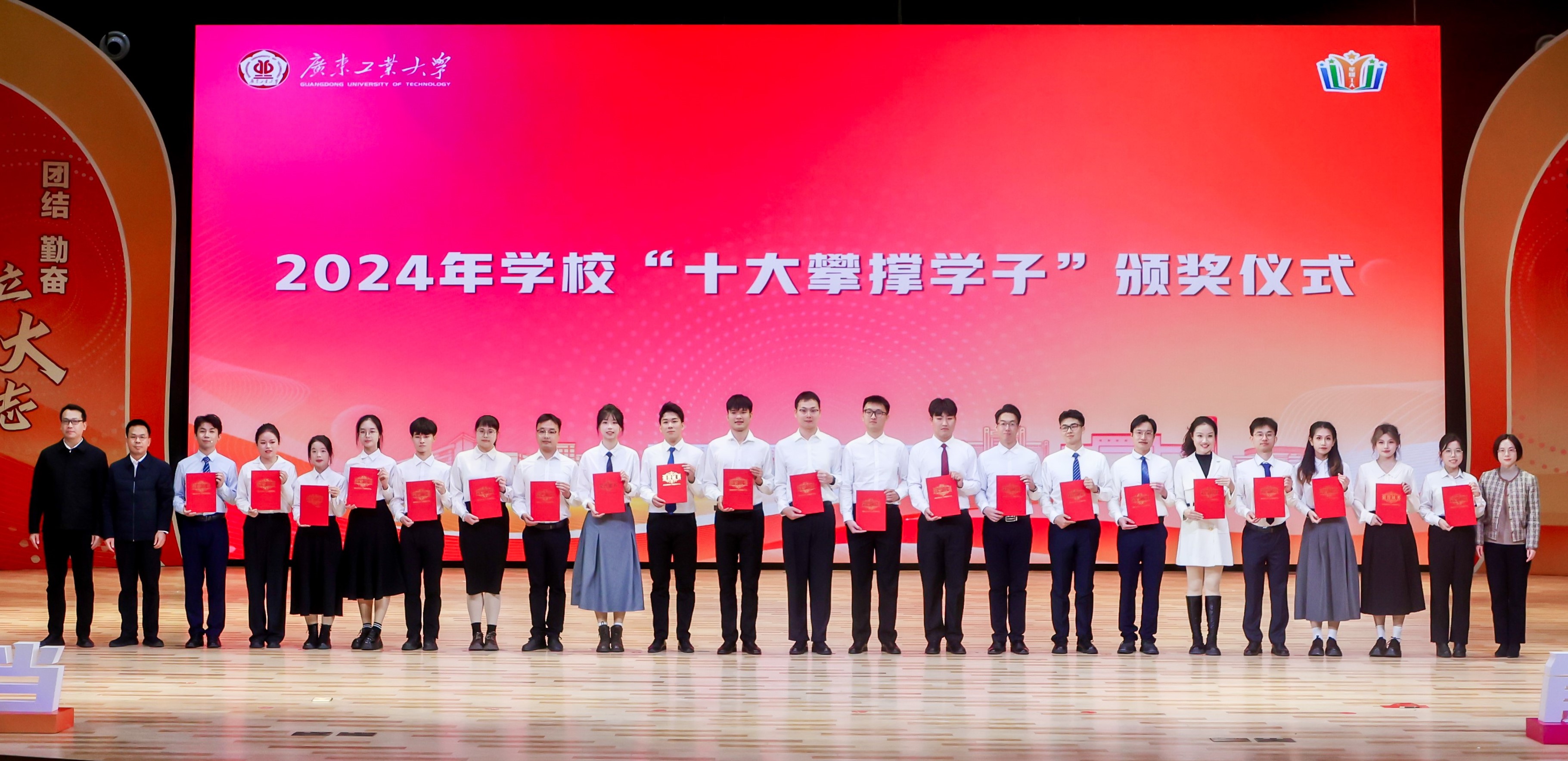 活动表彰了一批优秀学生榜样,学校党委办公室、校长办公室、党委组织部、党委宣传部、教务处、党委学生工作部、研究生院、心理健康教育中心、校团委、对外联络与校友事务办公室等单位相关负责人,以及旭日集团、广州睿达科教投资有限公司嘉宾分别为2023-2024学年国家奖学金、2023-2024学年国家励志奖学金、第十届“星耀工大·筑梦成长”校园之星评选“特色标杆之星”、2024年学校“十大攀撑学子”等获奖学生颁奖。