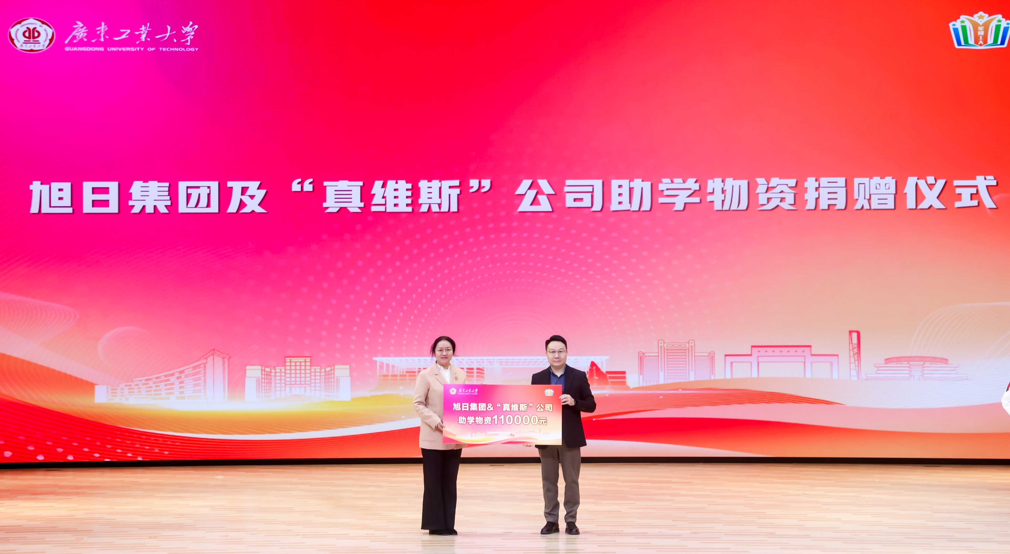 活动还举行了热心企业捐资助学仪式,旭日集团向学校捐赠了一批价值11万元的助学物资。何青表示,旭日集团一直以来都十分热心公益事业,旗下的“真维斯”公司和学校在学生奖助工作上一起携手走过13个年头,和广工有着很深的情缘,希望通过企业的努力为莘莘学子传递爱与温暖,也希望同学们积极弘扬慈善公益精神,树立更高尚品德。