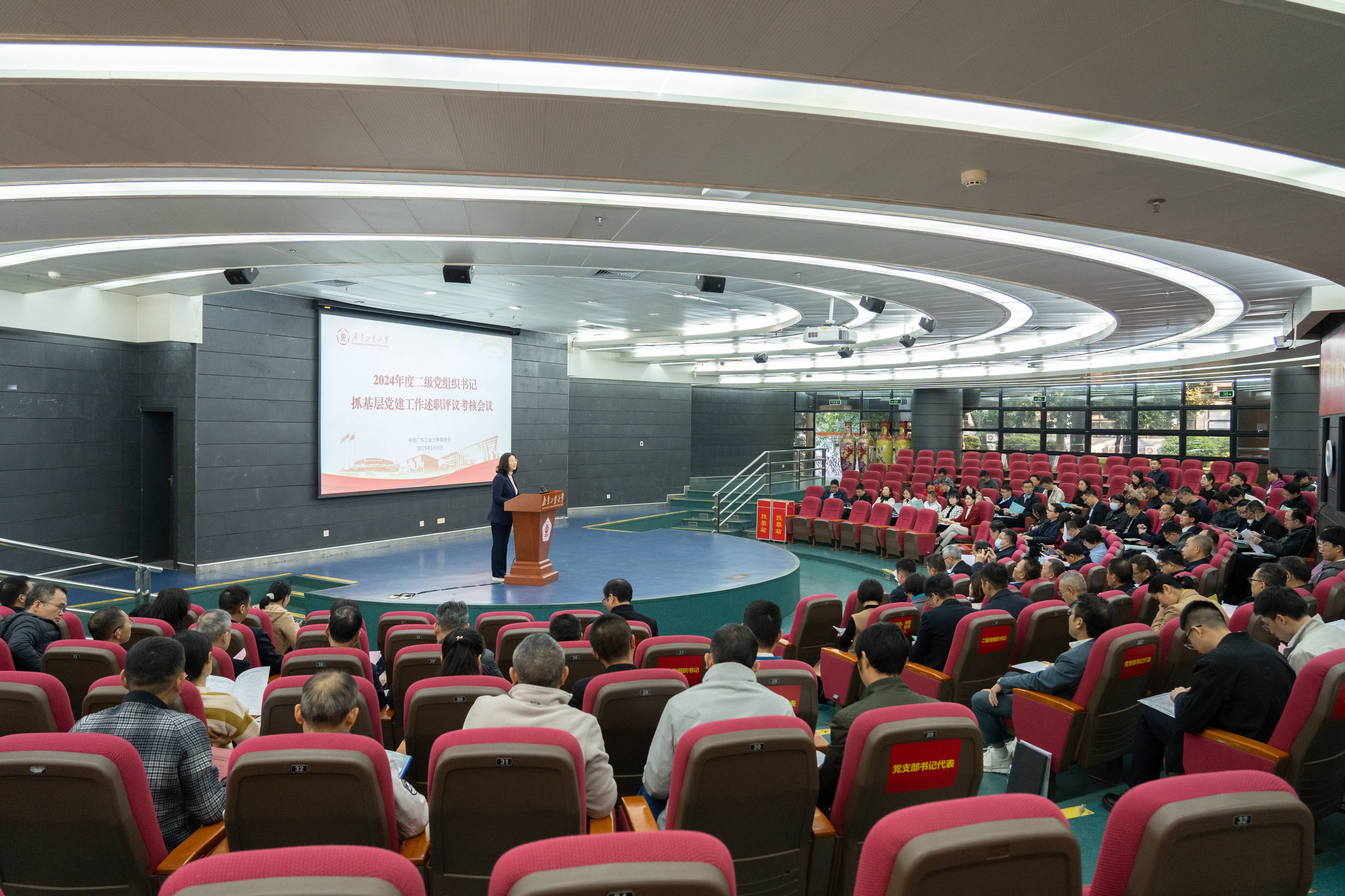1月3日上午,学校党委在大学城校区大讲堂圆弧报告厅召开二级党组织书记抓基层党建述职评议考核会,对过去一年二级党组织书记抓党建工作进行集中展示和全面“体检”,对新一年继续抓好党建工作进行动员和督促,进一步压实基层党组织书记管党治党、强基固本的政治责任。