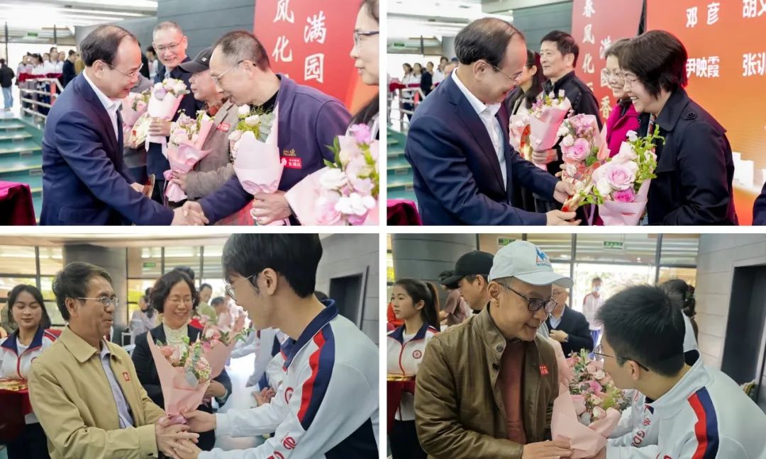 2024 年,学校退休教职工共150人,他们来自学校不同岗位,或三尺讲台传道授业,或潜心科研提携后学,或坚守岗位维护学校运转。邱学青为荣休教职工代表颁发荣休纪念牌,学生代表向荣休老师献花。