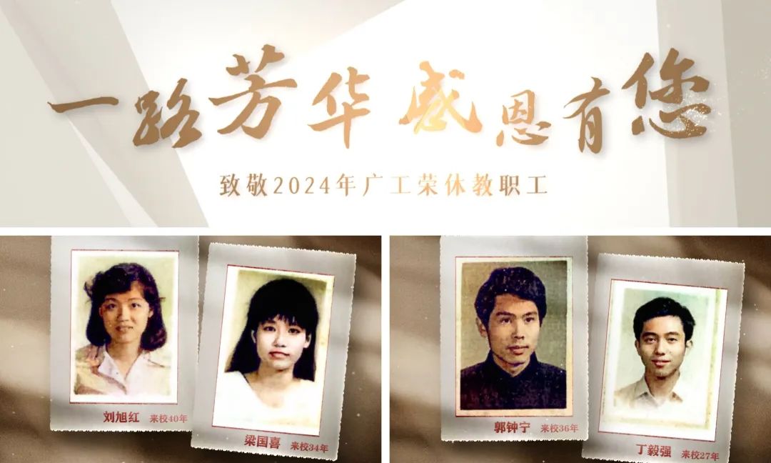 一载栉风沐雨,一季春华秋实,一颗赤诚之心,一段光辉历史。在温馨而又庄重的荣休仪式上,伴随着经典旋律《光阴的故事》悠扬响起,一段精心制作的视频《一路芳华﹒感恩有您》打开时光的旧匣子,瞬间抓住了所有人的心弦。屏幕上闪烁着150名荣休教师当年初到广工、青春洋溢的证件照。每一张照片都是一个故事,每一张面孔都承载着对学校深沉的爱与奉献。