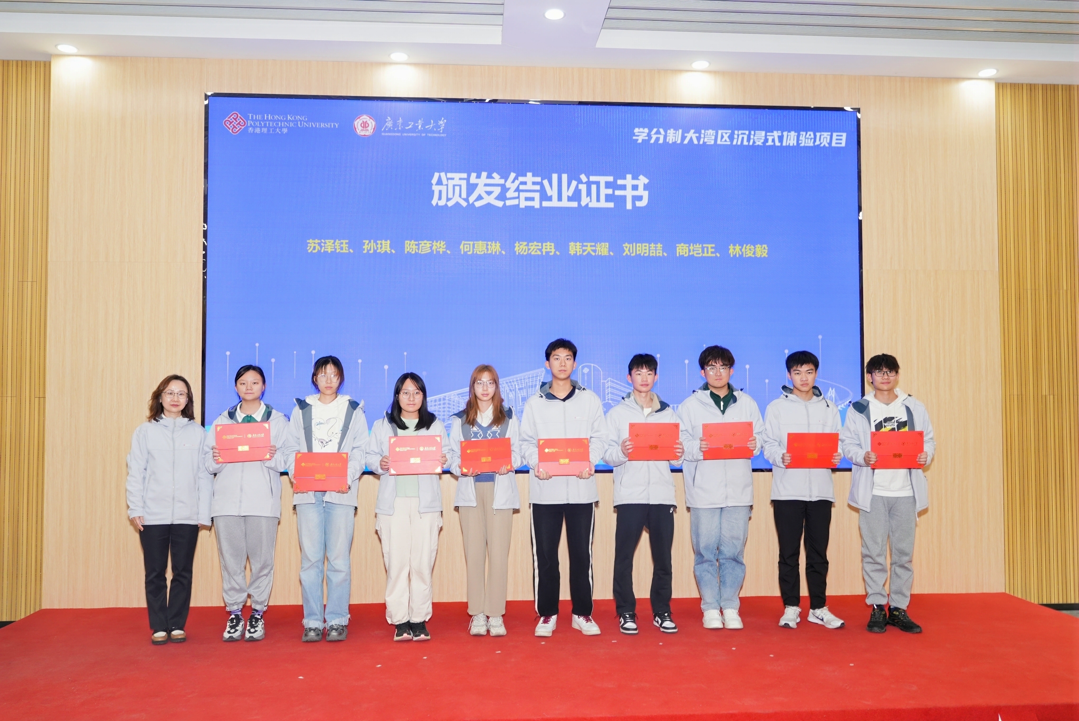 据悉,“学分制大湾区沉浸式项目”是广工联合港澳高校跨境协同培养大湾区高素质人才的系列项目之一,同时也是港理工创新及创业副主修课程必修科目,港理工学生按要求修读完项目课程将获得创新及创业副主修课程对应学分。按要求修完项目的同学会获得两校认证的结业证书。后续,各组同学还将继续深化项目、联合落地创业。接下来,两校将以本次项目为起点,进一步深化拓展项目内涵,推动两校学生积极参与两校联合实施的“大湾区创新创业培育计划”、“大湾区创新创业实习体验计划”等,在联合参加竞赛、联合申报项目、联合创业孵化等方面开展多领域交流合作,共同助力粤港澳大湾区高水平人才高地建设。