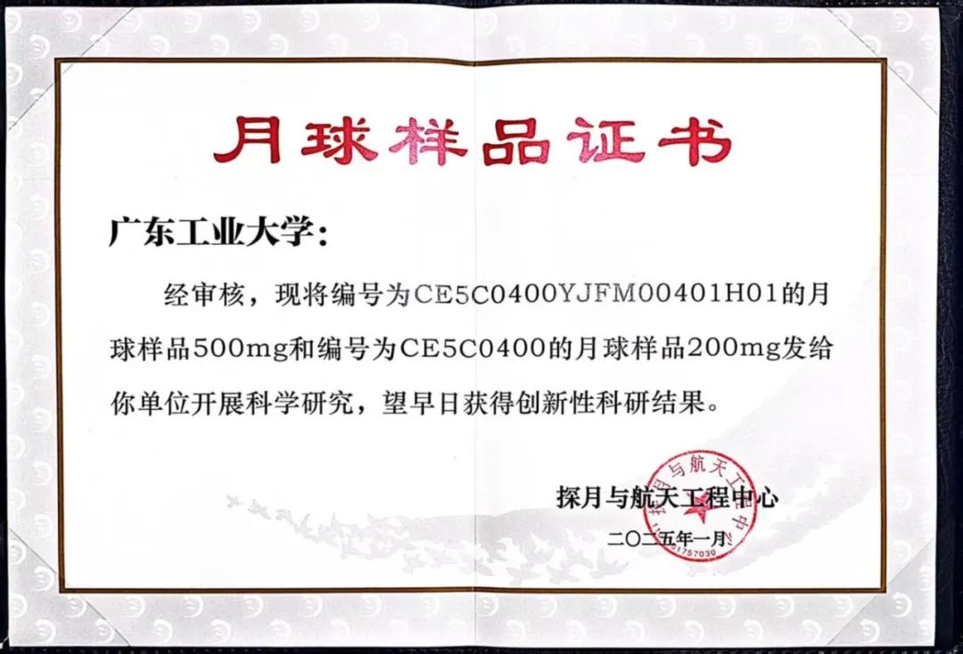 据悉,2024年12月,探月与航天工程中心组织召开了第八次月球科研样品借用申请评审会。经月球样品专家委员会评审,探月与航天工程中心审核并报国家航天局批准,最终16家科研机构的45份申请获得通过,对应18名使用责任人,样品发放量共计8550.4mg。其中,广工是广东省唯一通过的高校。