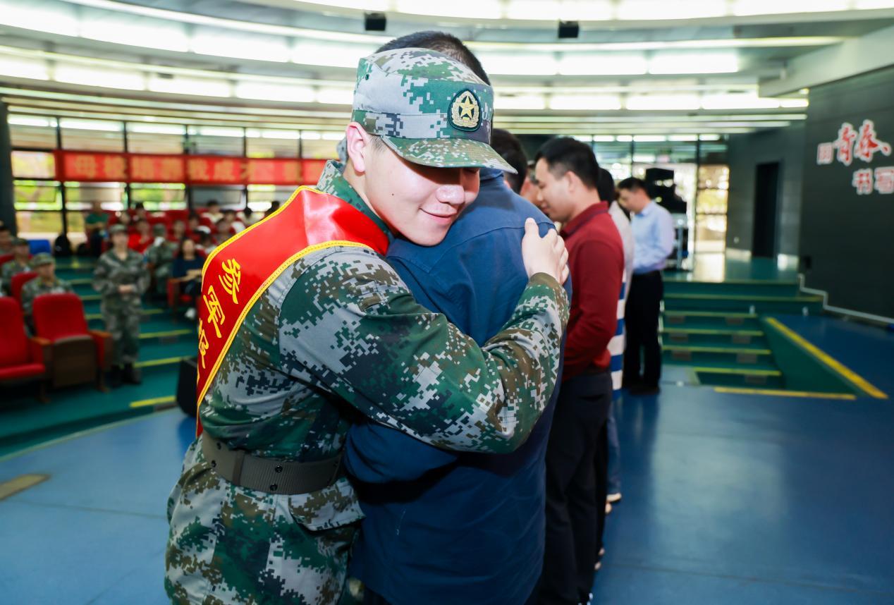 会上还进行了退役老兵宣誓仪式、新老兵交接仪式、新兵向家长献花仪式,学校征兵工作领导小组成员还为退役老兵和入伍新兵颁赠了纪念品。当退伍老兵洪亮宣誓“若有战,召必回!”,当新兵从老兵手中接过钢枪、昂首敬礼,当新兵和家长眼含热泪、紧紧拥抱,忠诚、责任、担当、感恩……展现得淋漓尽致,令现场每个人为之震撼动容。