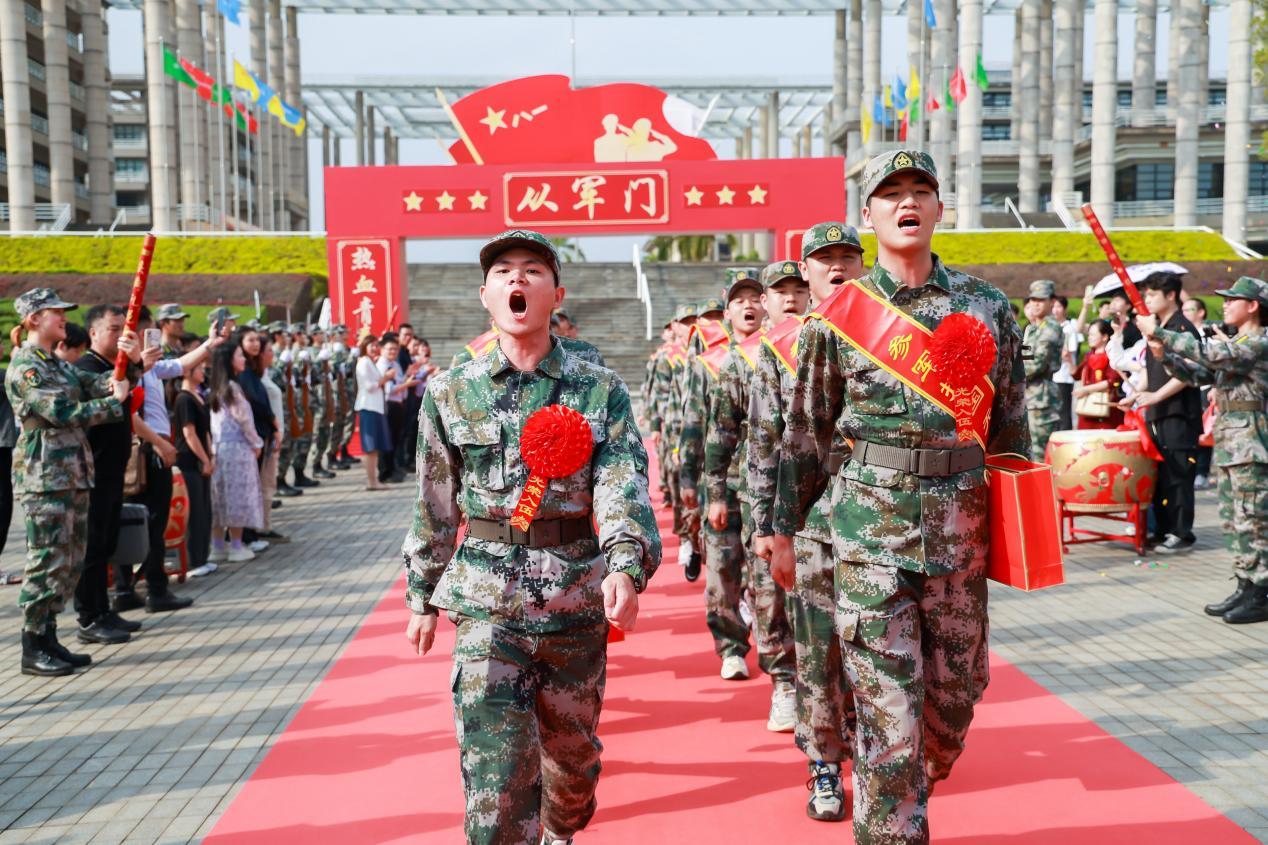 近日,广工在大学城校区举办“热血青春踏征程,军营共筑强军梦”2025年春季新兵入伍欢送会暨老兵退伍欢迎会。学校党委副书记陈卓武,越秀区人民武装部政委艾承豪上校,校党委常委、宣传部部长张育广出席,学校征兵工作领导小组成员、相关学院党委专职副书记、征兵联络员、2025年春季入伍新兵、退役老兵、预征预储兵员和新兵家长亲友等300余人参加了活动。