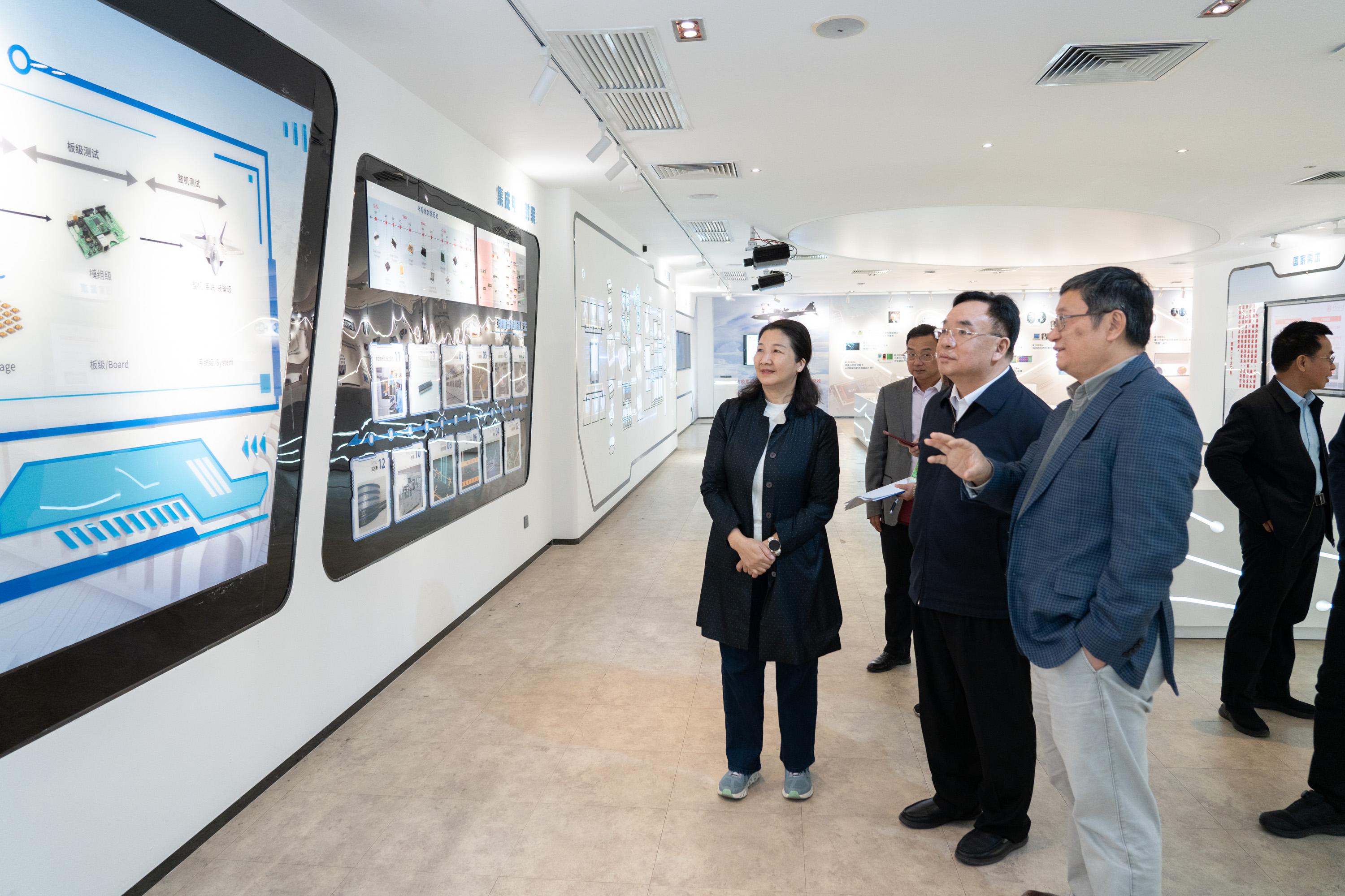随后,丁红都一行参观了集成电路学院,听取学院在学科建设、科研攻关及服务粤港澳大湾区集成电路产业发展的汇报。他强调,集成电路是支撑现代产业发展的核心领域,希望学校进一步发挥学科优势,深化产教融合,为广东高质量发展输送更多高层次技术人才。
