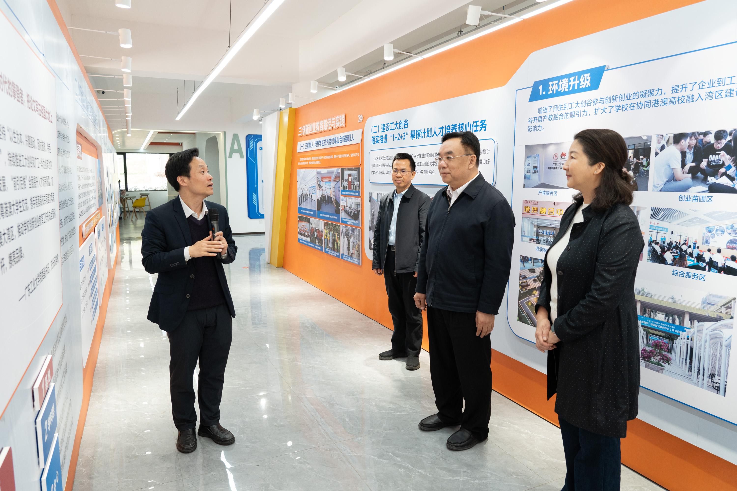 在工大创谷,丁红都详细了解了运营模式、学生团队孵化项目及成果转化情况,对学校“以赛促创、以创促教”的培养模式表示赞赏。他指出,工大创谷充分展现了广工大在培育创新型人才方面的特色优势,为民政领域工作与高校协同发展提供了宝贵经验。
