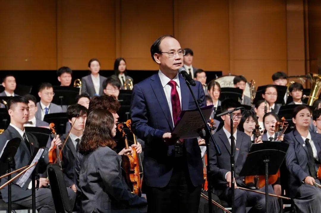 “广工学子走进清华、唱响清华,这是一次最生动的美育教育实践。”邱学青为音乐会致辞,深情回忆起自己的求学经历:“在清华读书时,科技报国的家国情怀和使命担当、坚韧不拔的体育精神深深融入我的血脉,使我终生获益。如今在广工,我也努力把以生为本、注重全面发展的教育理念发扬传承下去。”他指出,广工高度重视以体育人、以美化人,努力构建德智体美劳全面培养的教育体系,作为一所地方工科高校,学校的体育美育也能够全面“开花”,成为闪亮名片。希望通过此次交流,让清华大学等兄弟高校更加全面认识广工、了解广工,也希望这次在中国顶尖学府的演出,激励广工学子无论是在学术科研还是在追求艺术的道路上,都能够锐意进取、精益求精。