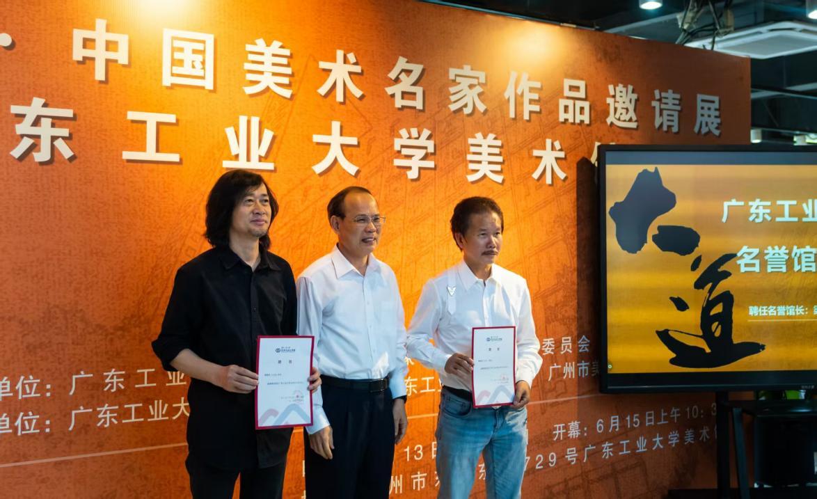 仪式上“广工美术馆”正式揭牌,著名艺术家王绍强、许鸿飞受聘为名誉馆长、广工艺术与设计学院客座教授。
