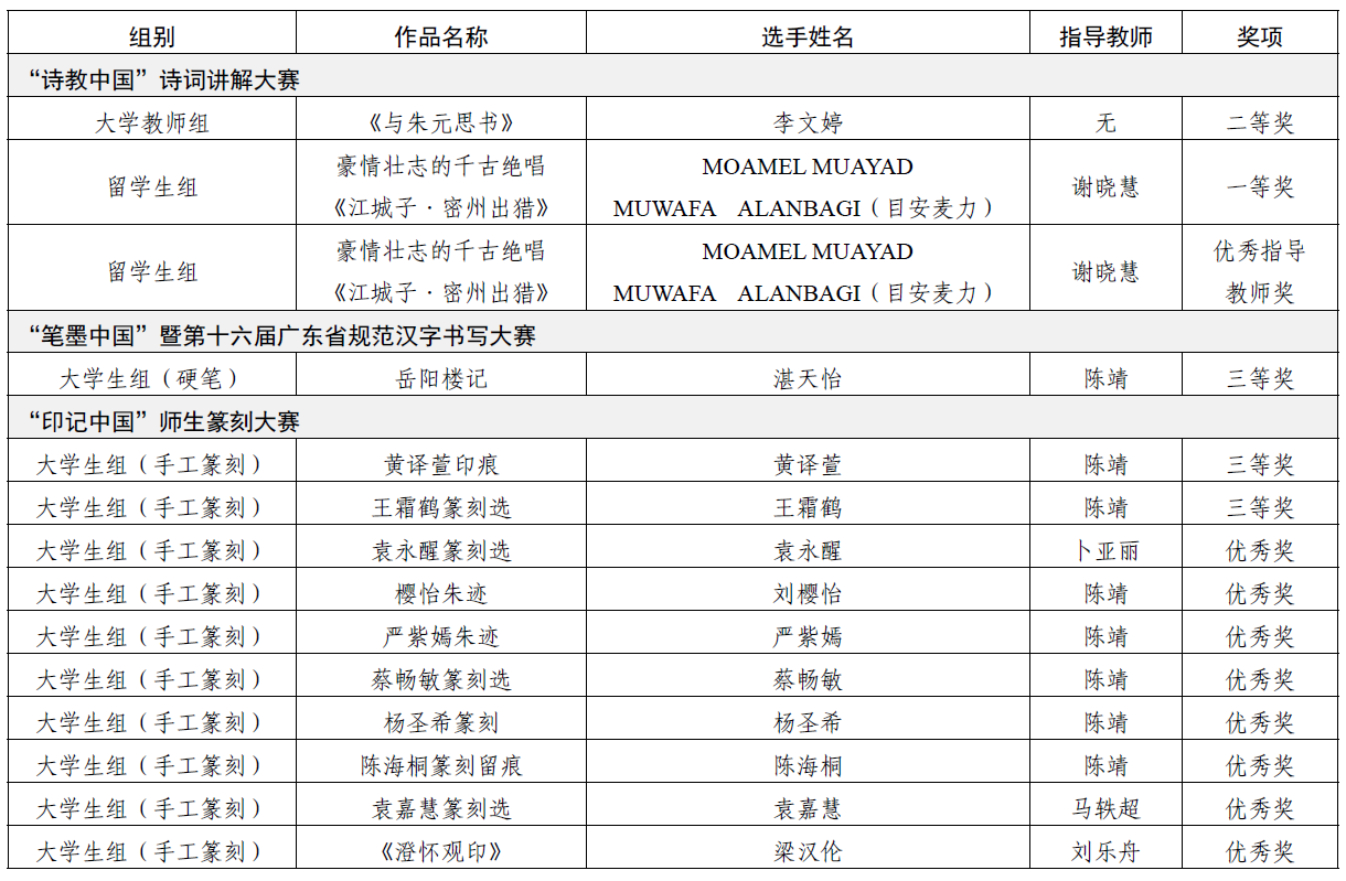 近日,广东省教育厅、广东省语言文字工作委员会公布2025年广东省中华经典诵写讲大赛获奖情况,广工师生表现优异,共斩获省级奖项14项,其中一等奖1项,二等奖1项,三等奖3项,优秀奖8项,优秀指导教师奖1项。