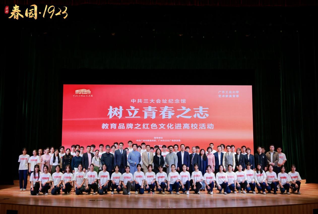 12月2日,线上买球官网(中国)官方网站携手中共三大会址纪念馆在大学城校区文化活动中心举办“树立青春之志”红色文化进高校活动,活动既是红色文化进高校的首场,又是广工“艺术家美育季”品牌活动专场,引领青年学子在与百年历史对话中坚定信仰、砥砺志向,传承红色基因、赓续红色血脉。