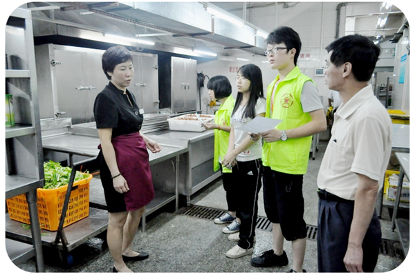 早在2012年3月,学校就成立了学生食堂监督委员会,代表全校学生对食堂开展第三方的监督工作。食监委的同学通过参与食堂采购、验收、日常监管工作、受理学生投诉、每周两次进行卫生检查与就餐满意度调查等,维护学生权益。同学们都说:“有了食监委,吃得放心,吃得满意!”
