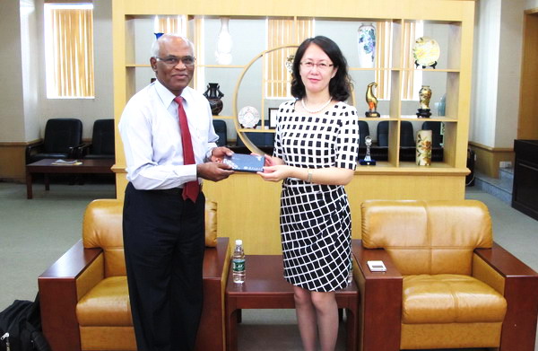 副校长张力在东风路校区会见,对副校长V. Raju到访表示欢迎,就中印合作办学动画专业项目的近期情况作了介绍,同时就合作办学过程中的一些具体问题,特别是来校任教教师的教育背景、授课方式等进行了探讨。