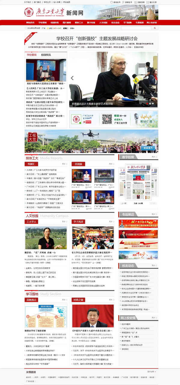 新版新闻网以融合为特征,加强内容建设和载体创新。在内容上,着重做好“新闻、人文、教育、时政”四篇文章,突出学校新闻传播、人文建设和学习引导。在新闻传播上,按照新闻重要性,分头条新闻、学校要闻、校园快讯,以及图片新闻栏目发布信息;在人文建设上,突出师生在大学文化和大学精神建设中的主体性地位和作用,分工大学人和学子风采栏目发布传播。除此之外,保留了旧版新闻网的“校友动态”栏目,展现校友工作动态和校友风采,加强广大校友与母校的情感纽带。新增了“网上校史馆”栏目,突出校园文化传统的积淀和传承;在学习引导上,围绕教育和时政,突出新闻网的思想政治和高等教育学习功能。在载体上,突出互通互联的融合特点。通过学校官网、微博、微信、数字校报、校园广播等多种媒介发生“化学反应”,进行全方位、立体式互动传播,扩大主旋律在广大师生中的信息覆盖,提升传播效率和效果。