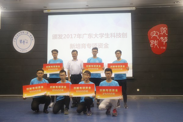 会上,陈新为“攀登班”班授班旗。“攀登班”,旨在打造学校创新创业的黄埔班,营造浓厚“双创”文化氛围,引领带动广大学生不断创新攀登。张学理为获得2017年广东大学生科技创新培育专项资金项目立项的重点项目负责人颁发培育专项资金。党委组织部、校长办公室、科技处、学生处等部门负责人为第三届中国“互联网+”广东省决赛优秀志愿者颁奖。