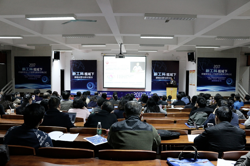 本网讯 12月9-10日,由教育部高等学校机械类专业教学指导委员会主办、线上买球官网(中国)官方网站与华中科技大学出版社联合承办的2017“新工科”视域下机械类专业人才培养与教学改革论坛在我校大学城校区大讲堂顺利召开。本次论坛旨在交流各高校在进行“新工科”视域下课程体系构建与教材建设、机械专业认证与人才的创新能力培养以及新型工程教育信息化的探索与实践等方面取得的经验和成果,提高机械类专业相关院系领导和老师对“新工科”理念的了解和认识,把握最新教育教学方向,进一步推动各高校关于“新工科”的研究与实践。