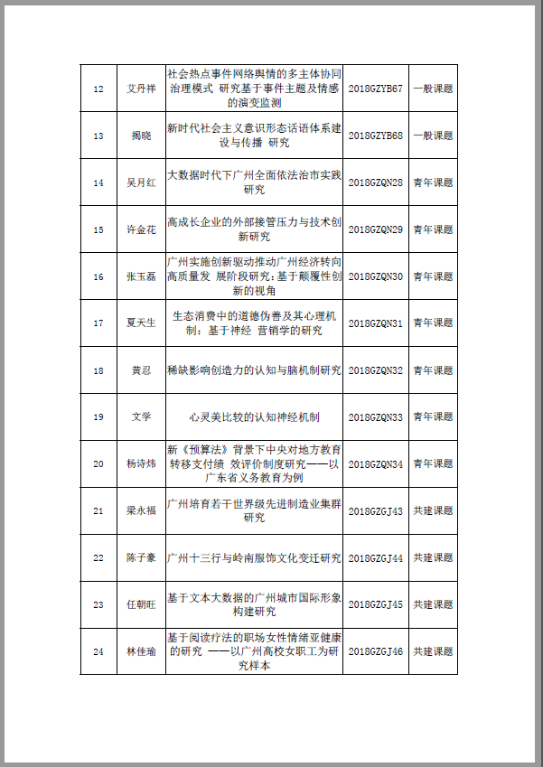 附件:广州市哲学社会科学发展“十三五”规划2018年度课题立项名单
