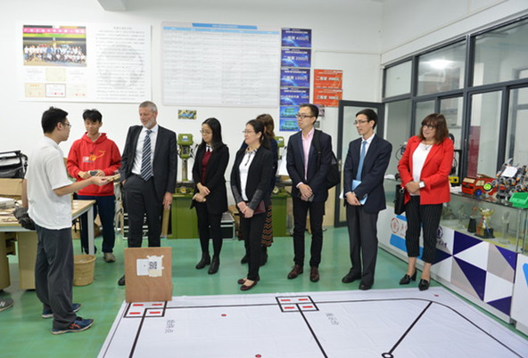 会后,新西兰大学代表团在张力等陪同下参观了我校国家级协同创新平台广州国家IC基地和国家级众创空间创新创业学院,双方就创新创业教育和师生交流互访等进行了深入交流。