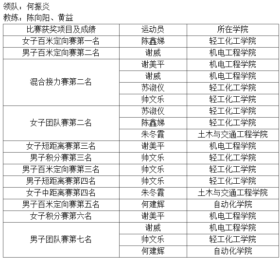 本次比赛由中国大学生体育协会、中国中学生体育协会和中国测绘地理信息学会联合主办,有来自全国20多个省市195所学校1500多名运动员参赛,其中本科院校90多所,清华大学、北京大学、北京师范大学、北京交通大学、同济大学、厦门大学、华中科技大学、华南理工大学、浙江工业大学等20多所学校与我校同在乙组角逐。我校8位队员在5天11个竞赛项目中奋力拼搏、力压群芳,夺得团体总分桂冠,实现跨越性突破。