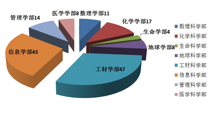 2018年我校在基金委各科学部获资助项目数分布