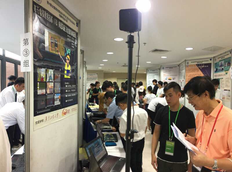 本次全国参赛作品均经过了专家组背靠背函审初选,PPT答辩,现场展示和现场答辩环节。我校环境科学与工程学院参赛的两件作品均经过学生团队近两年时间的努力才得以完成,其中获一等奖的参赛作品为建筑安全虚拟教育培训系统,目前该系统已出售一套给深圳某公司,售价20万元。在作品现场展示及答辩环节,我院参赛选手热情介绍,沉稳自信回答评委提问,获得评委一致好评。