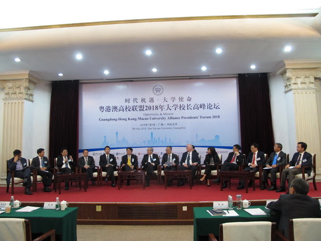 本网讯 7月9日,粤港澳高校联盟2018年大学校长高峰论坛在中山大学举行。教育部、省教育厅、澳门特别行政区政府高等教育辅助办公室、香港特别行政区政府教育局以及粤港澳高校联盟(以下简称“联盟”)成员高校与相关政府部门代表等约200人与会。学校党委书记、校长陈新出席论坛。