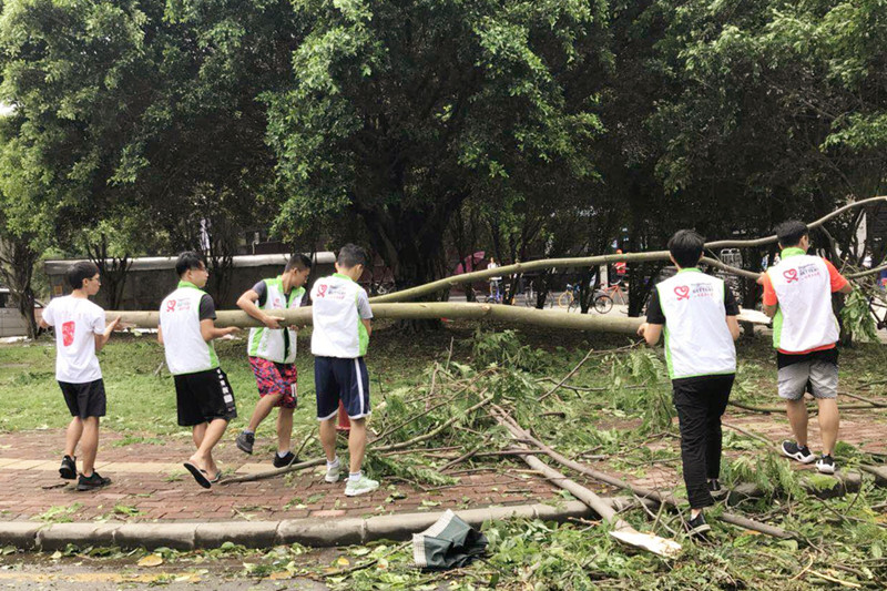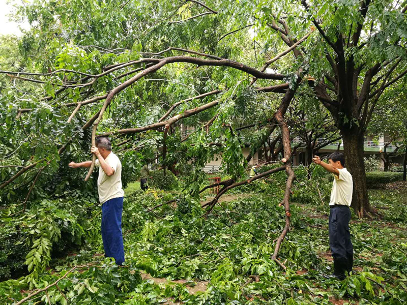 9月17日,“山竹”已经过境,但是这场来势汹汹的台风,带给校园不少创伤。师生们迅速行动起来,清理路障、打扫校园,为恢复校园环境在努力,明天复课做准备。