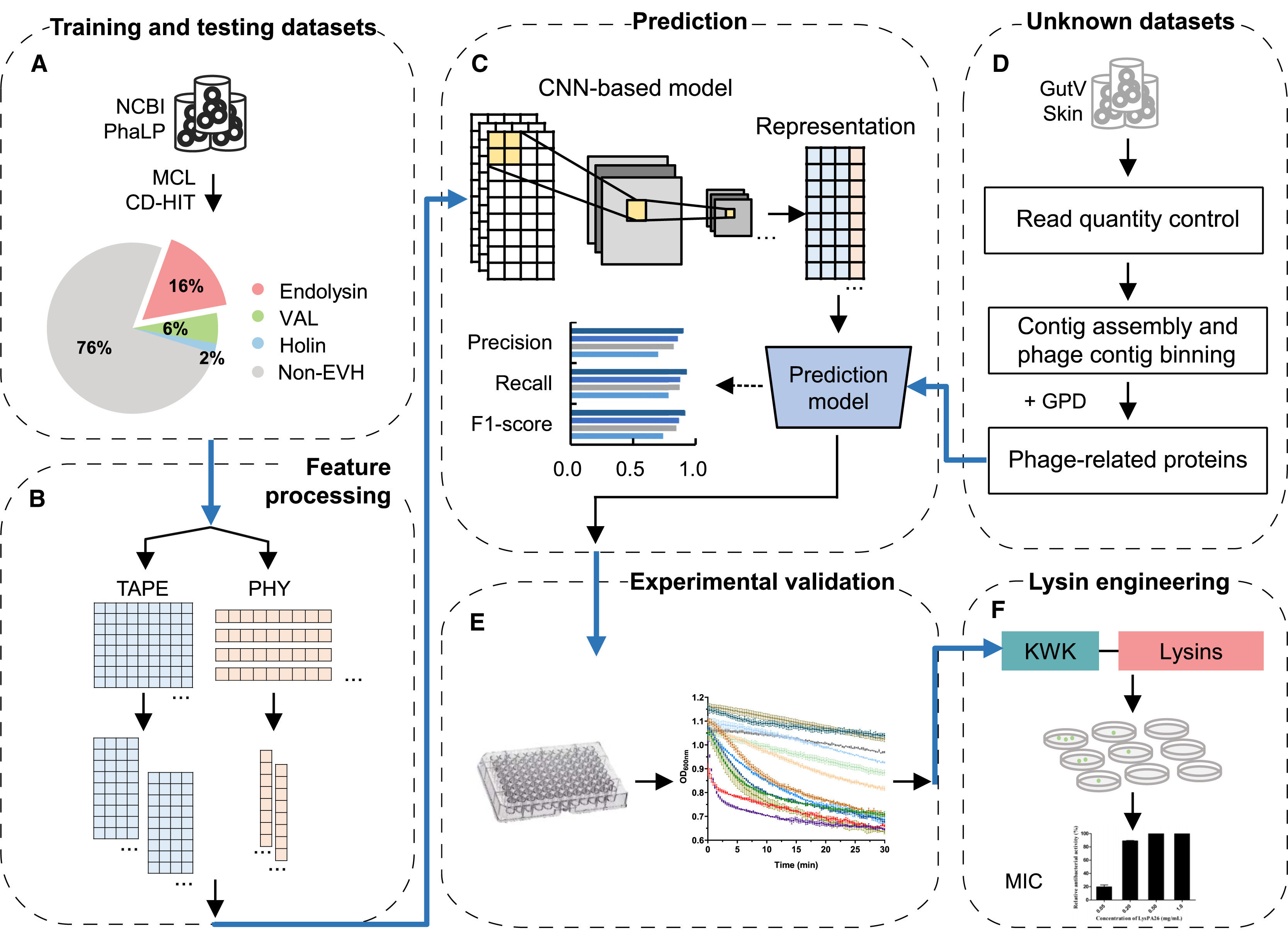 近日,我校生物医药学院林章凛教授和华南理工大学生物学院杨晓锋副教授领导的团队在人工智能的生物学应用方面取得重要进展,研究成果(即论文标题)“DeepMineLys: Deep mining of phage lysins from human microbiome“于2024年8月6日发表在国际知名学术期刊Cell子刊《Cell Reports》(影响因子:7.5)。华南理工大学生物科学与工程学院2018级博士生付一然为第一作者,论文通讯作者为线上买球官网(中国)官方网站林章凛教授和华南理工大学杨晓锋副教授。