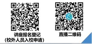 本次讲座采用线上线下结合形式进行,校外人员可扫右侧二维码申请入校参加现场讲座,校内学员凭签到及心得提交情况发放学术条(可跨学院)。