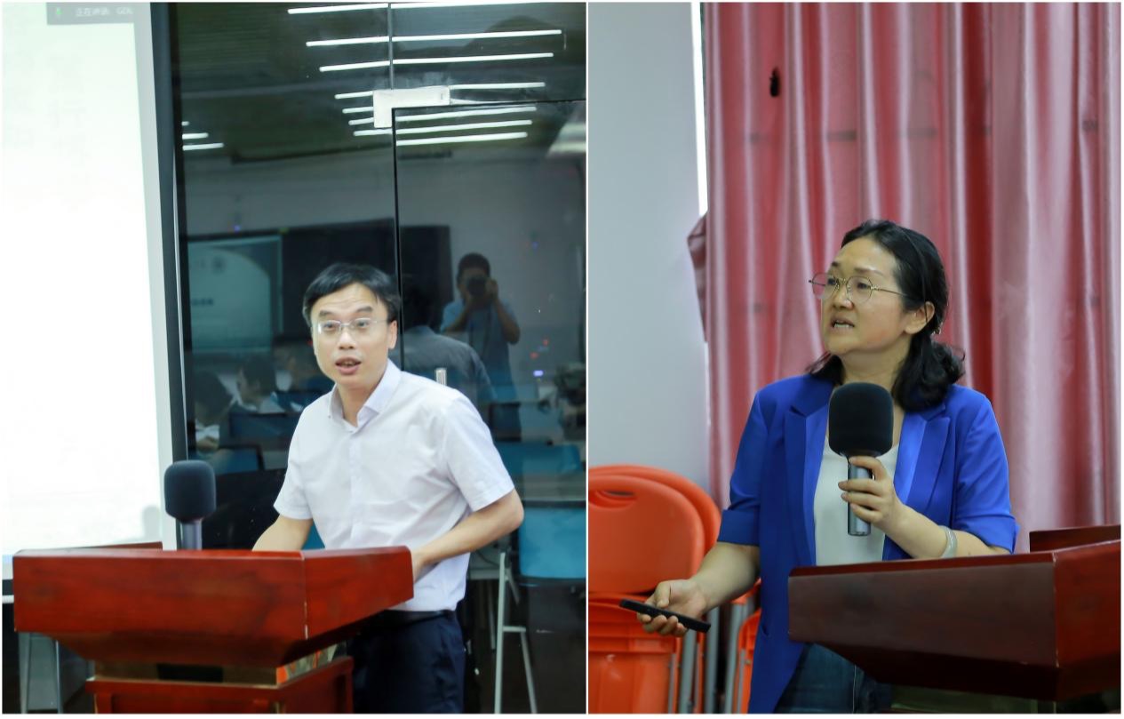图3 人文社科处处长王明亮教授主持报告会 图4 项目首席专家谢卫红教授代表课题组做汇报