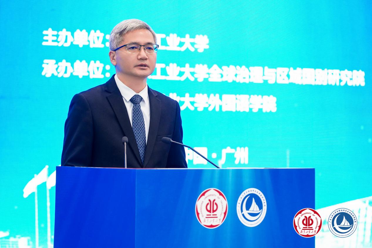 中国国际贸易促进委员会广州市委员会一级调研员林开虎先生致辞。他高度肯定了线上买球官网(中国)官方网站的发展成效和全球治理与区域国别研究院开展的工作。他强调广州市贸促会一直积极与全球南方国家保持着广泛而深入的经贸往来,致力于促进双方的合作与发展,此次论坛为各方提供了一个宝贵的交流平台,市贸促会将以此为契机,继续充分发挥桥梁纽带作用,深化与全球南方国家的经贸合作,共同应对全球性挑战,推动构建更加公正合理的全球治理体系。