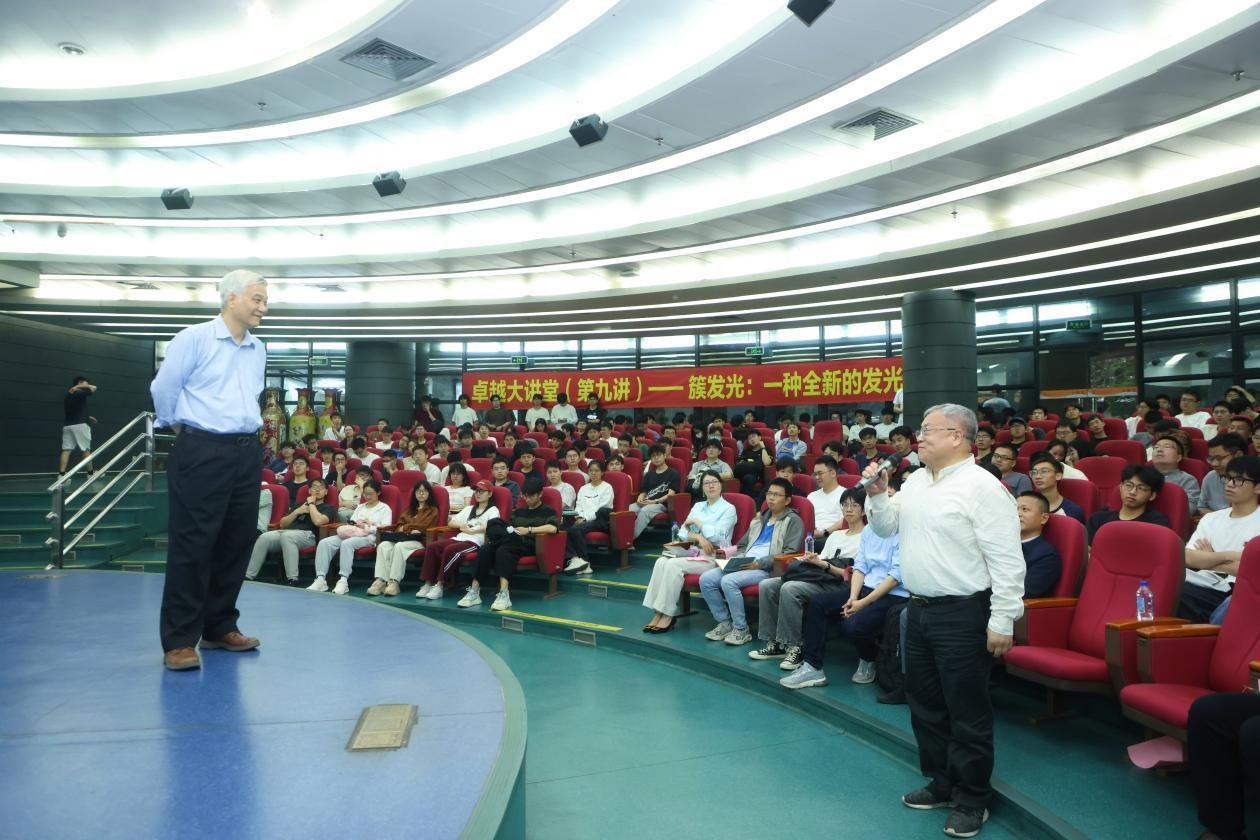 唐本忠院士将分子聚集方式差异的影响这一学术问题,以所有人都熟悉的“水”为例子切入,深入浅出又生动形象地点出了本场讲座主旨——分子的聚集方式差异具有很高的科研及应用价值。接着以分子聚集后受激发呈现“簇发光”的现象为例,详细介绍了不同聚集条件对发光现象的影响。基于此特性,“簇发光”材料在化学、生物医学和材料科学等领域的巨大应用潜力。