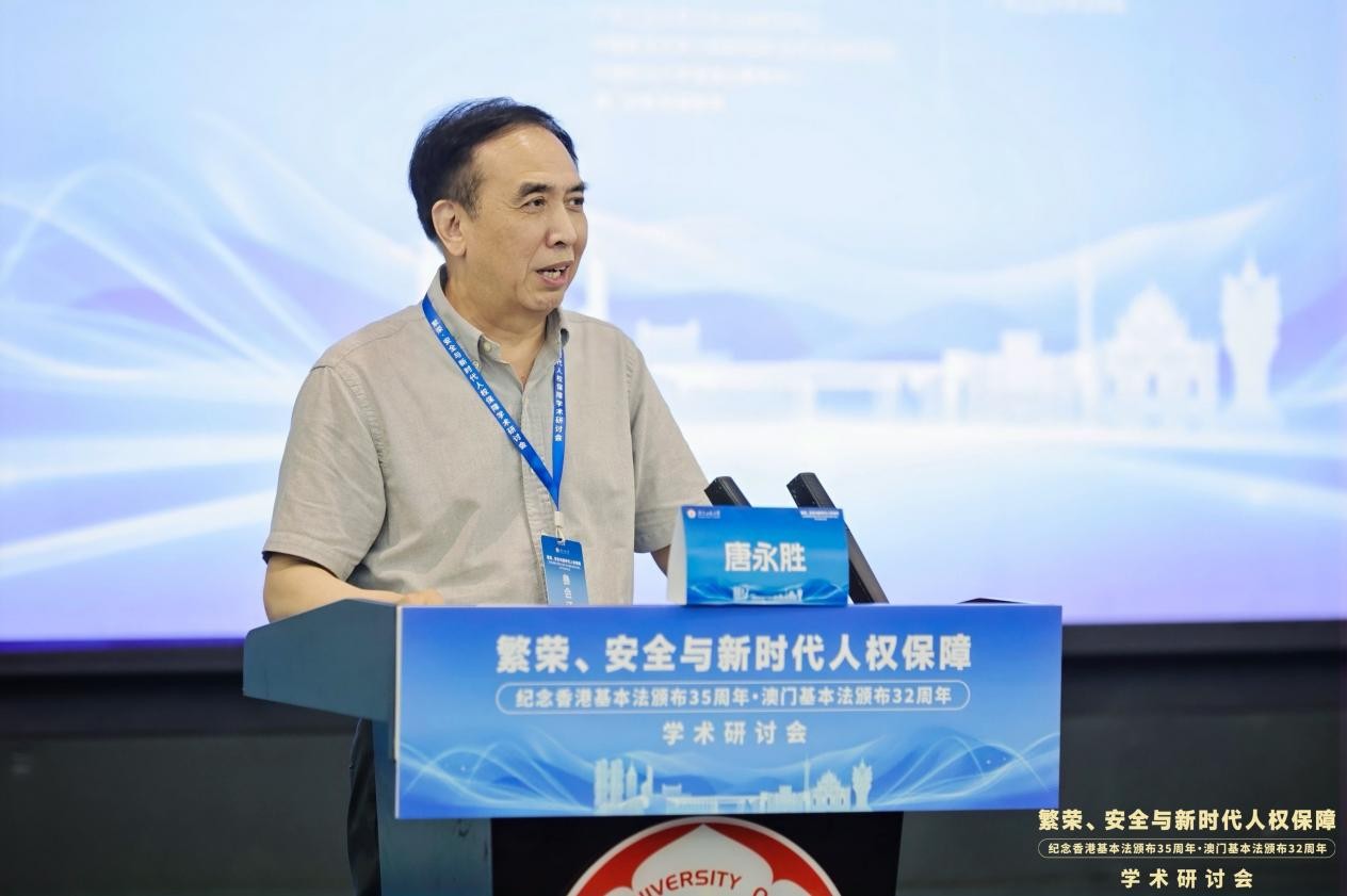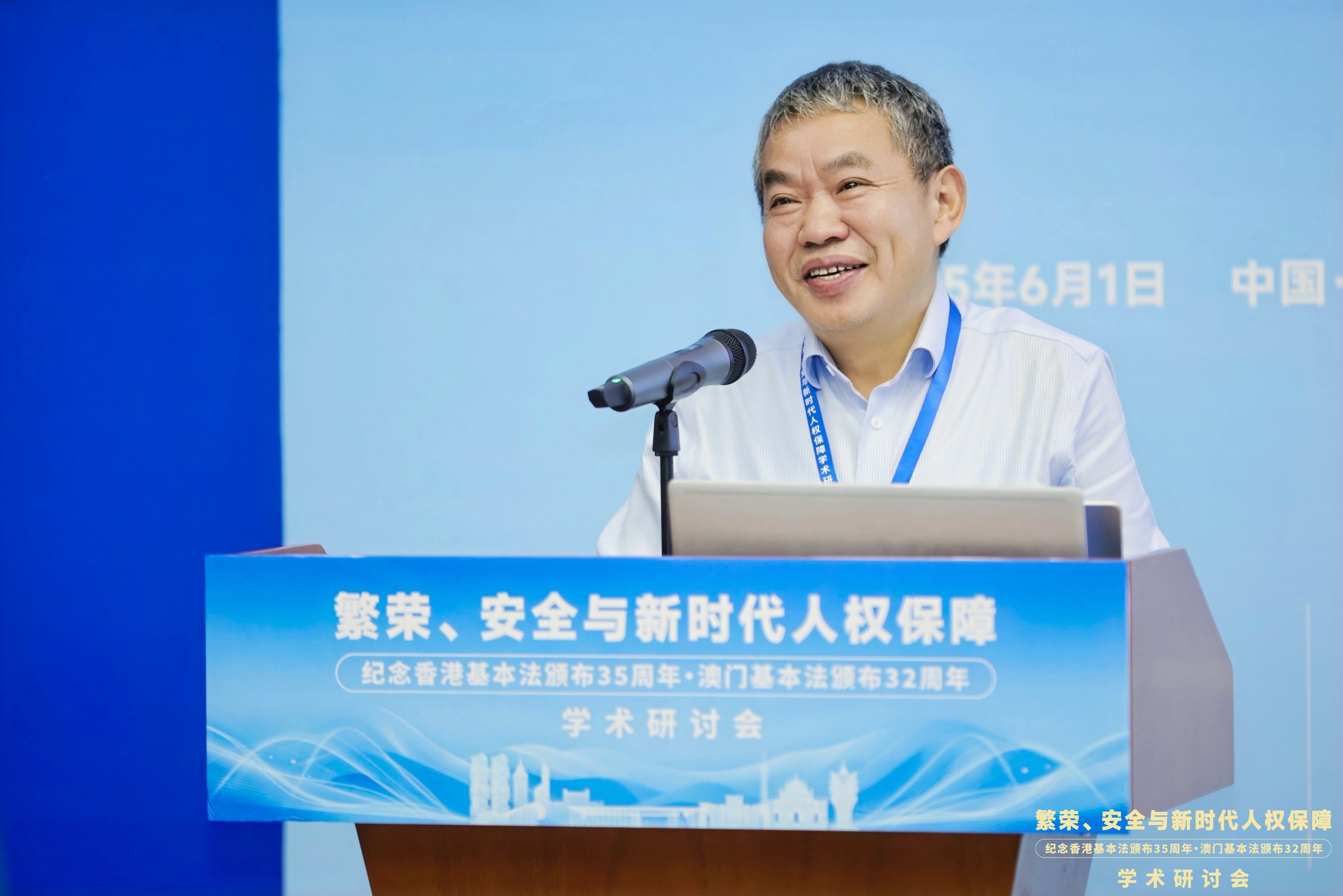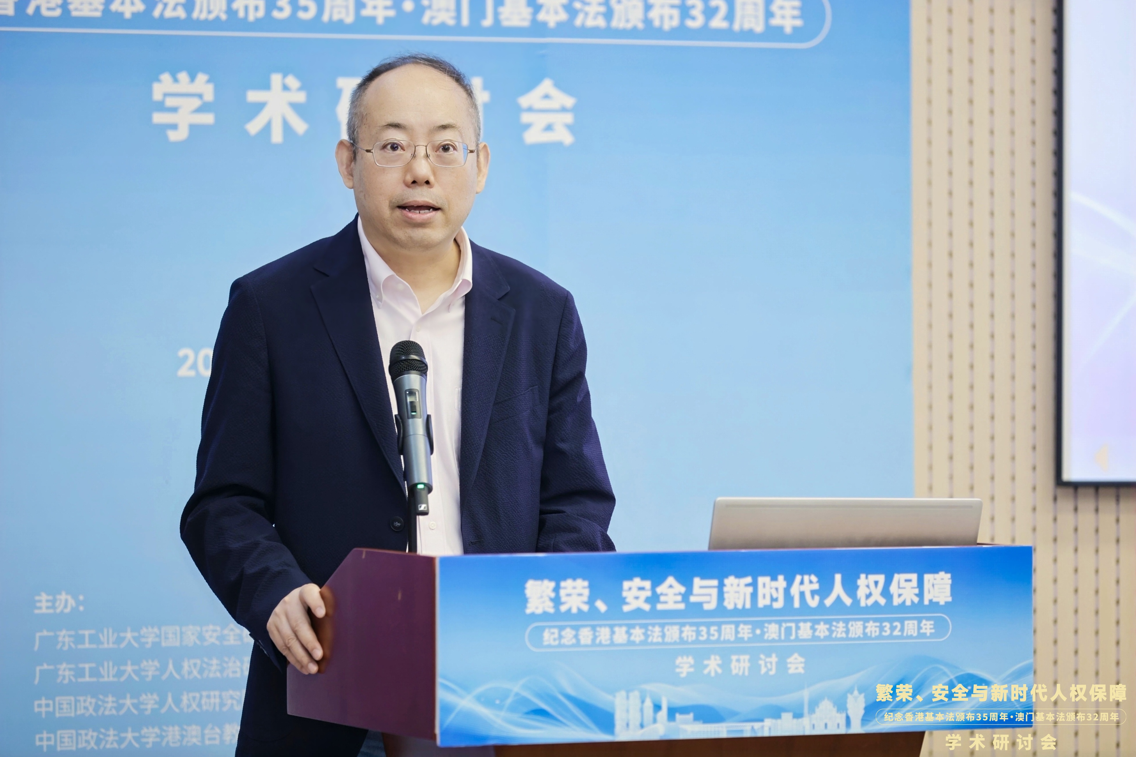 6月1日,“繁荣、安全与新时代人权保障——纪念香港基本法颁布35周年、澳门基本法颁布32周年学术研讨会”在广东广州隆重举行。此次研讨会由线上买球官网(中国)官方网站国家安全研究中心、线上买球官网(中国)官方网站人权法治研究中心、中国政法大学人权研究院(当代法治研究院)、中国政法大学港澳台教育中心以及澳门创新发展智库联合主办,由线上买球官网(中国)官方网站法学院承办。来自国防大学、中国人民大学、中国社会科学院、吉林大学、中南大学、北京理工大学、中央民族大学、中南财经政法大学、华东政法大学、西南政法大学、云南大学、昆明理工大学、贵州财经大学、香港大学、香港城市大学、澳门大学、澳门城市大学、华南理工大学、暨南大学、深圳大学、广东外语外贸大学、广东财经大学、广州大学、肇庆学院、濠江法律学社、香港政策研究所等内地及港澳知名高校、研究机构的超过80位专家学者齐聚一堂,围绕国家安全法治、人权保障实践、粤港澳大湾区区域协同治理等核心议题展开深入研讨。