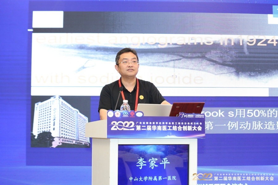 中山大学附属第一医院李家平教授介绍了影像介入学的现状与未来、经药盒动脉灌注化疗(PCSC)和肿瘤化学消融(PEI),并阐述了MDTs肿瘤多学科治疗团队的发展历程及科研成果。