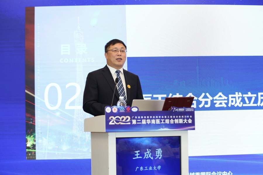 2022年6月11日,一个融合医科、工科、企业跨领域、多学科资源的医工结合创新平台——广东省精准医学应用学会医工结合分会在粤正式成立,成立当日举办了第二届华南医工结合创新大会,来自医、工、企领域的专业人士深入、广泛地交流了医工结合前沿技术、政策,分享医工结合实践案例,展现了这个融合平台的鲜明特色。广州市越秀区副区长陈烯、广东省精准医学应用学会常务副会长兼秘书长孙炳刚、线上买球官网(中国)官方网站副校长王成勇共同为平台成立揭牌。