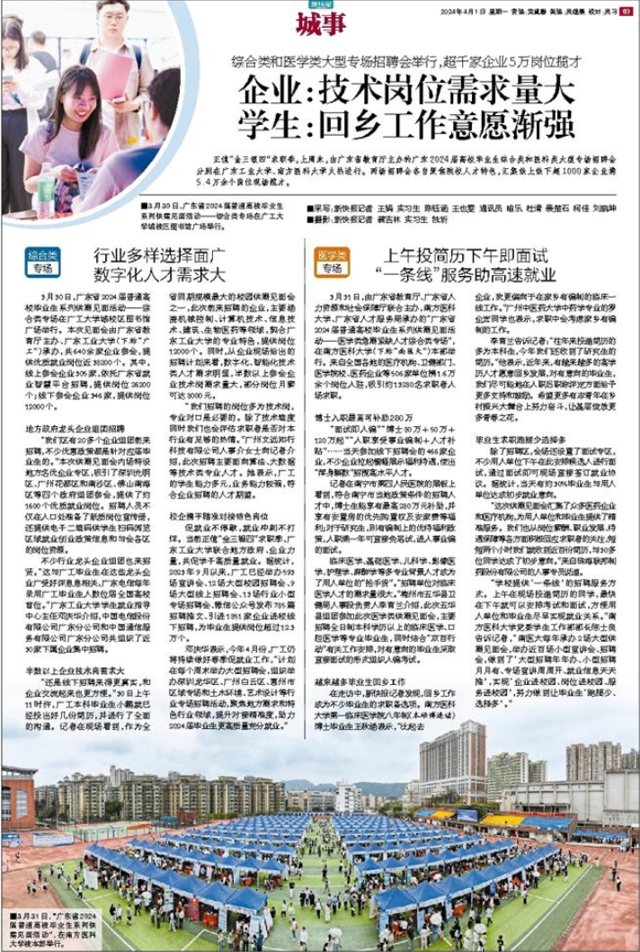 ■3月31日,“广东省2024届普通高校毕业生系列供需见面活动”,在南方医科大学校本部举行。