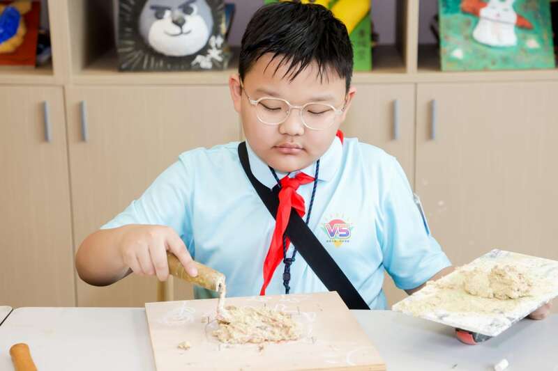 岭南灰塑,是一种极具岭南地域文化符号性质的艺术。在工作坊里,孩子们聚精会神地听老师讲述灰塑艺术与传统文化如何结合的故事,欣赏岭南灰塑非遗大师作品。从构图、打骨架,再到草筋灰打底塑形,最后上色勾线......孩子们在体验中感受到建筑装饰艺术所承载的内在之美。