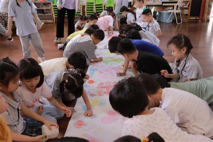 普法宣讲团精心设置了“五星小红旗”风车制作、“我爱祖国”贴画以及“童心绘祖国”长卷绘画活动。一张张五彩缤纷的贴画、一个个随风转动的红旗小风车展现在大家眼前,充满童趣的作品与法治元素完美融合,引导幼儿用法律之名,铸就爱国心家国情。