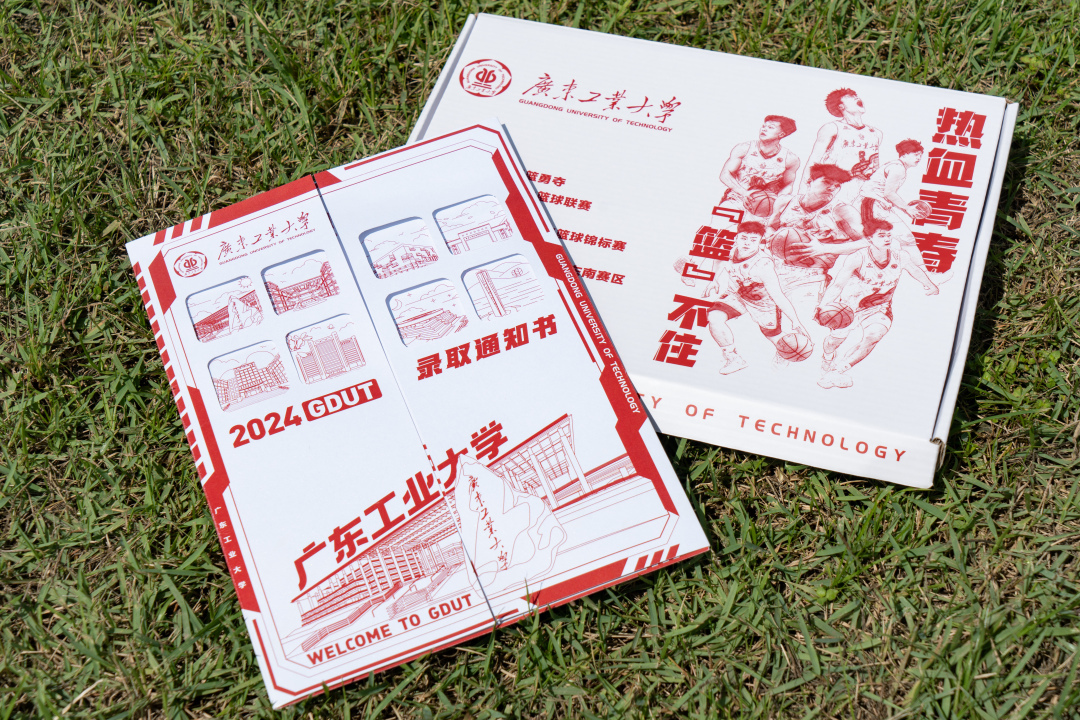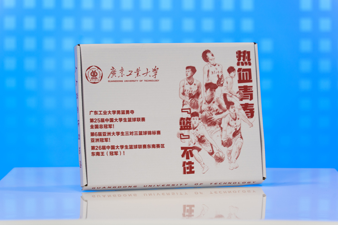 广工2024通知书礼盒整体采用红白灰的简约配色设计,礼盒以“热血青春‘篮’不住”为主题,封面展示广工高水平男子篮球队荣获第25届中国大学生篮球联赛(CUBAL)全国总冠军、亚洲大学生三对三篮球锦标赛冠军等荣誉,盒中赠送明星球员陈国豪的23号签名球衣,将“勇于拼搏、敢于胜利”的理念传递给新广工人,鼓励新生保持青春冲劲,矢志锐意进取。