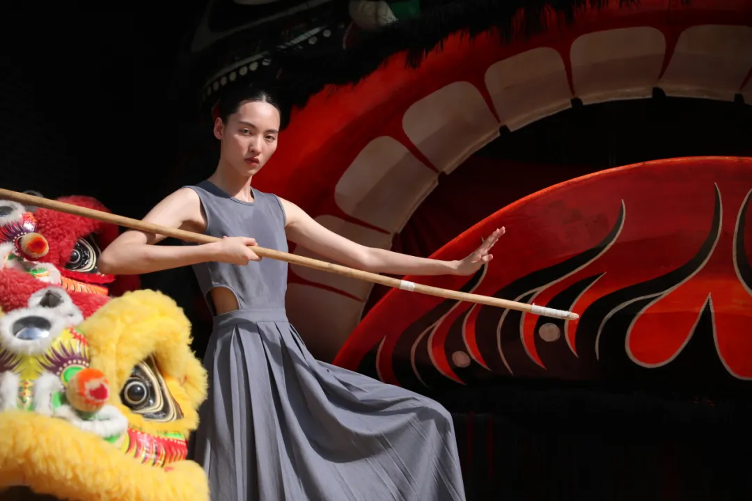 第二天,模特们来到西樵山下渔耕粤韵文化旅游园和黄飞鸿狮艺武术馆,探索非遗与时尚艺术的密语,揭开非遗中艺术美学。