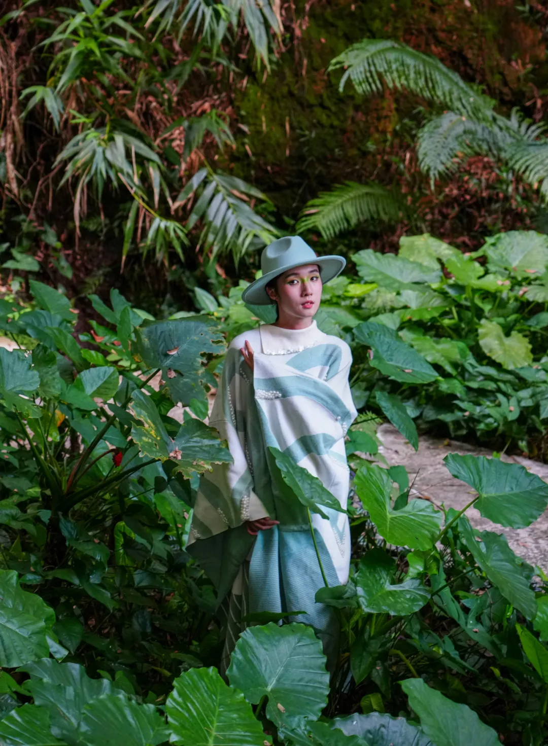 首站,模特们登上西樵山,来到有着岭南画派发源地的翠岩进行艺术创作,沉浸式开启自然山水间的户外艺术时尚创作。来自线上买球官网(中国)官方网站的模特走近自然,展示多款先锋性、多元性的服装,用艺术在诗情画意的山水画卷里奏响了一曲时尚狂想曲。