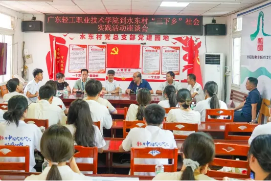 近日,广东轻工职业技术大学逐梦“轻”年“百千万工程”突击队抵达腰古镇水东村。水东村党支部书记程可、水东小学校长成新权及村委干部与突击队全体成员在党群服务中心开展座谈会。广东轻工职业技术大学林润惠教授指出,“饮水思源,广轻大师生应铭记水东村的恩情,此次暑期社会实践活动将以实际行动助力水东村高质量发展”。随后,突击队参观了学校曾经的办学旧址——程氏大宗祠,正是程氏的慷慨帮助,学校得以在此延续办学。