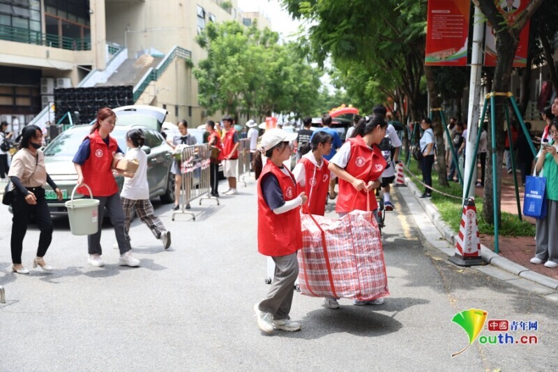 志愿者帮助新生搬运行李。宋潞 摄