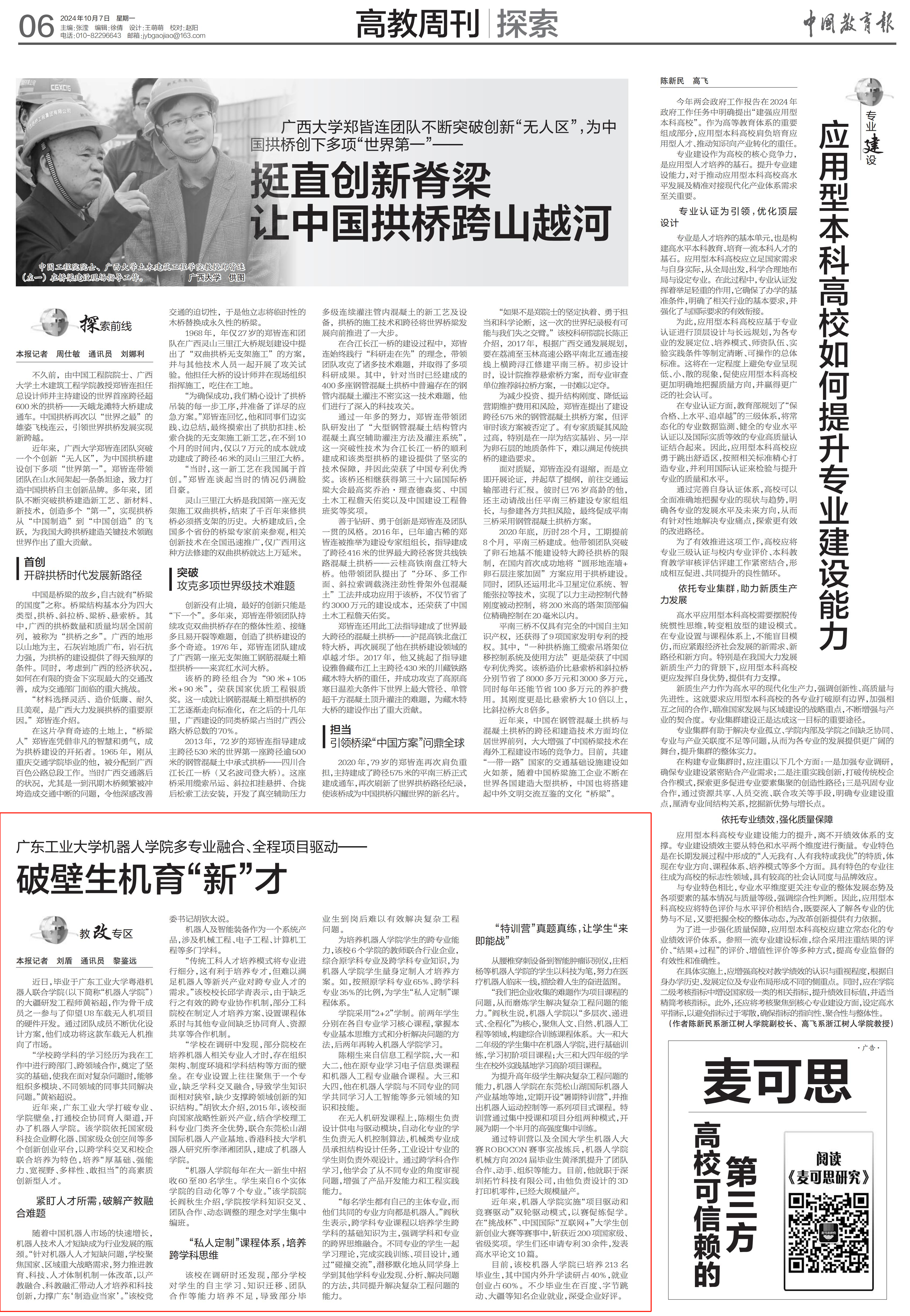 “传统工科人才培养模式将专业进行细分,这有利于培养专才,但难以满足机器人等新兴产业对跨专业人才的需求。”该校校长邱学青表示,由于缺乏行之有效的跨专业协作机制,部分工科院校在制定人才培养方案、设置课程体系时与其他专业间缺乏协同育人、资源共享等合作机制。