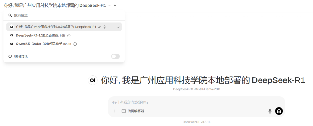 广州应用科技学院本地部署DeepSeek应用界面