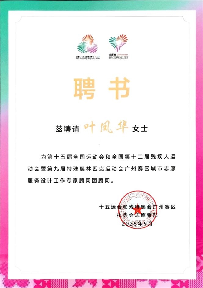 叶凤华教授还受邀出席第六届运动会志愿者动员发布会,获志愿者服务组委颁发感谢信以表彰其专业贡献。此举是对其多年来坚持艺术服务社会理念的充分肯定,也展现了高校艺术专业人才在服务国家重大活动中的重要作用,以及新时代艺术工作者的社会责任与担当。