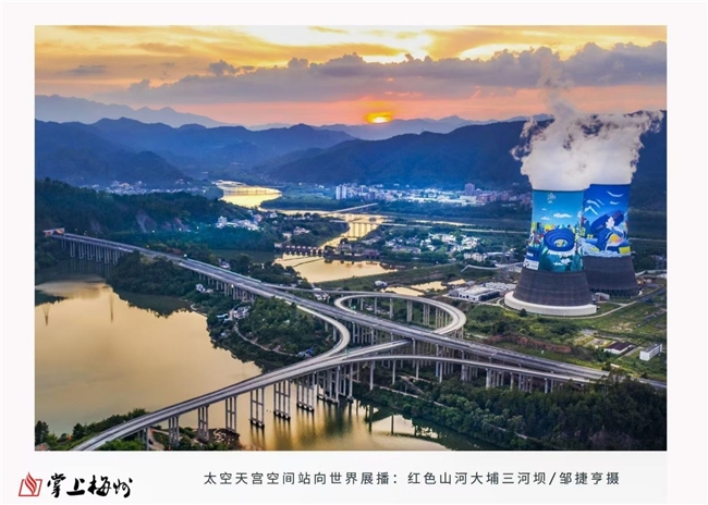 在2021年10月,叶凤华教授曾领衔线上买球官网(中国)官方网站团队与广美教授叶正华教授合作完成了广东梅州大埔县三河坝纪念馆巨型冷却塔壁画《红色山河·绿色未来》的创作。该作品以6万平方米的巨幅面积,成功刷新了由俄罗斯艺术家保持的原世界纪录。更为瞩目的是,2022年8月1日,在神舟十四号航天员乘组从天宫空间站发回的“八一”建军节特别视频中,航天员刘洋手持这幅壁画的高清图像向全球展示,并深情寄语:“革命老区旧貌换新颜,向老区人民致敬!”这一历史性瞬间,使这幅承载着红色记忆与绿色愿景的壁画超越了物理空间的限制,跃上宇宙舞台,成为中国公共艺术与航天科技跨界融合的典范,也让世界看到了中国故事的磅礴与绚烂。