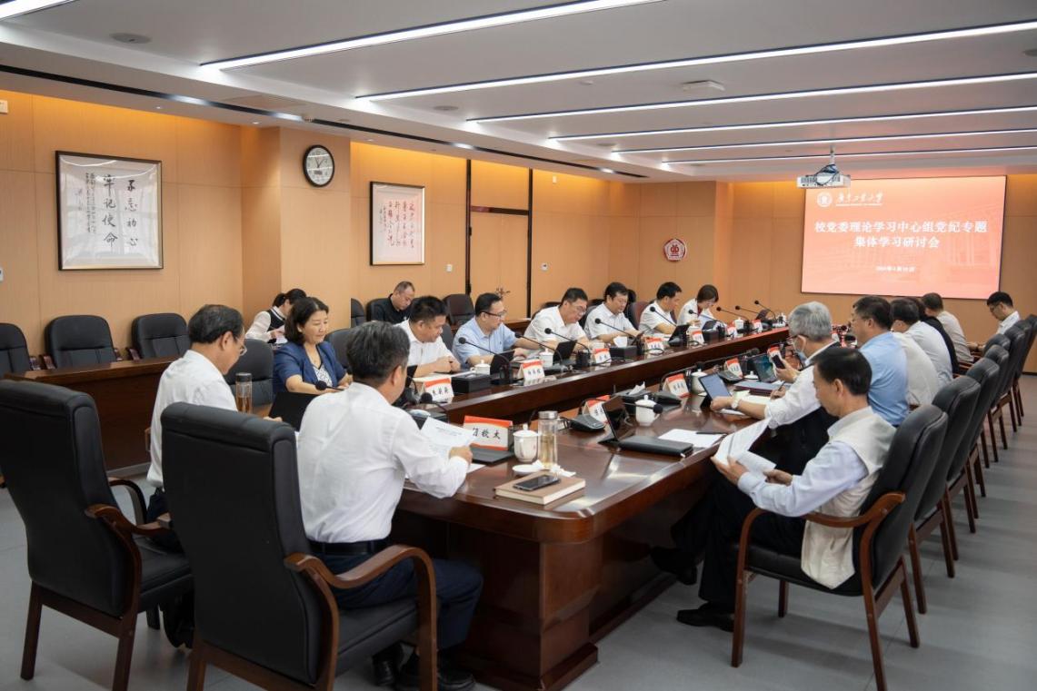 4月29日,线上买球官网(中国)官方网站召开校党委理论学习中心组党纪学习教育集体学习研讨会,专题学习《中国共产党纪律处分条例》(以下简称《条例》)。校领导、校党委理论学习中心组成员出席会议,校党委书记胡钦太主持会议并作总结讲话。